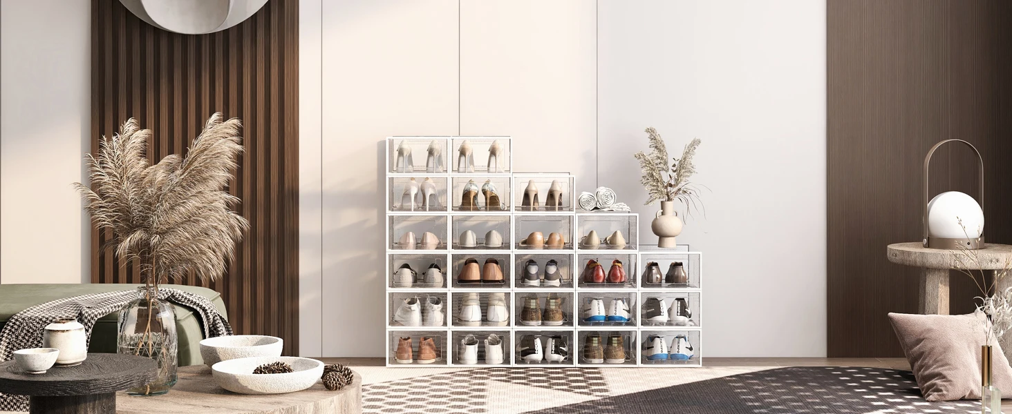 Reimagine your closet with a 12-pack of clear, stackable shoe storage that reveals every pair at a glance, simplifying daily outfit planning and keeping your space neat and organized.