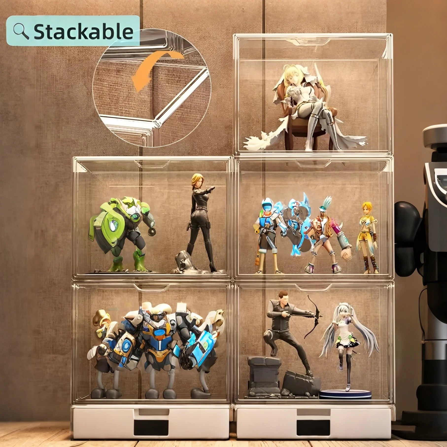 Elevate your display with a large-capacity, crystal-clear storage box that keeps every figurine, cosmetic, and collectible perfectly visible.