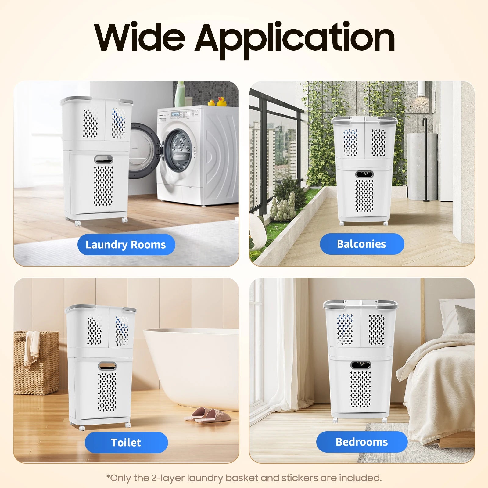 Movable Household Laundry Basket,2 Tier Laundry Hamper Basket Sorter with Wheels&Handle,Large Hand-Held Laundry Basket Storage