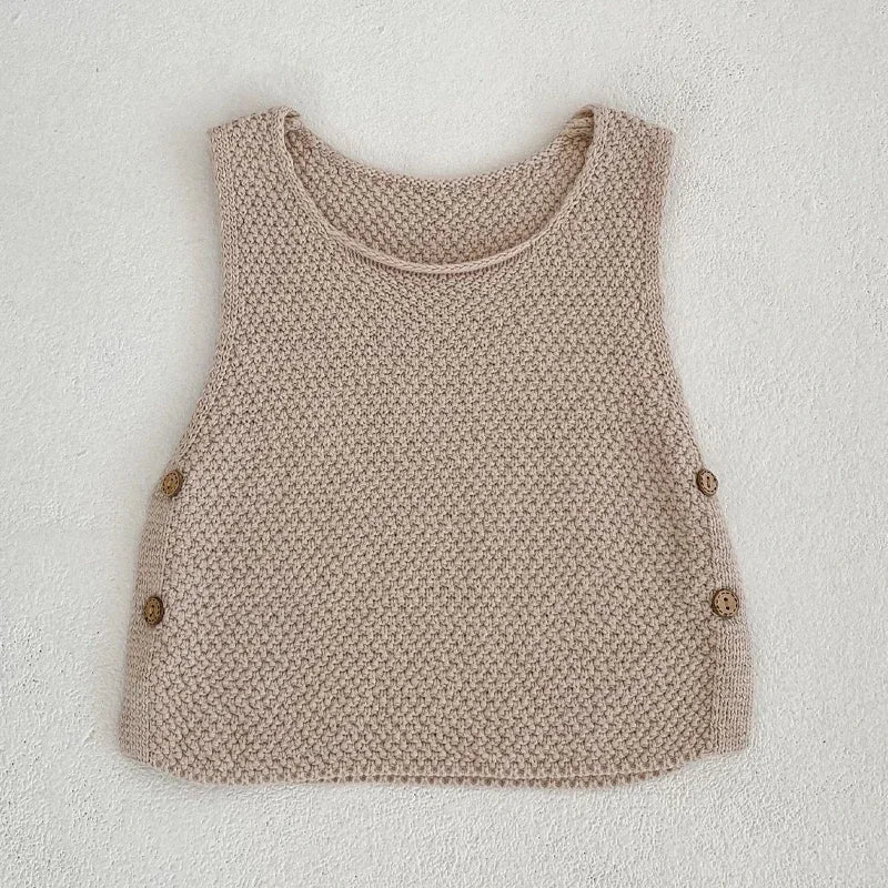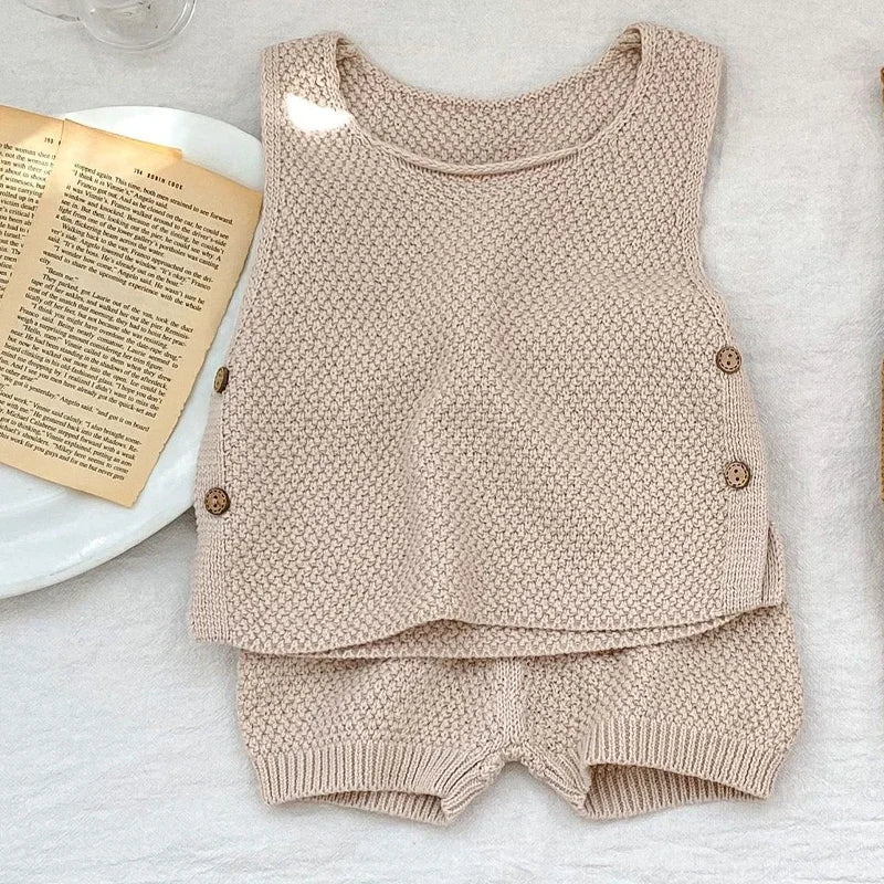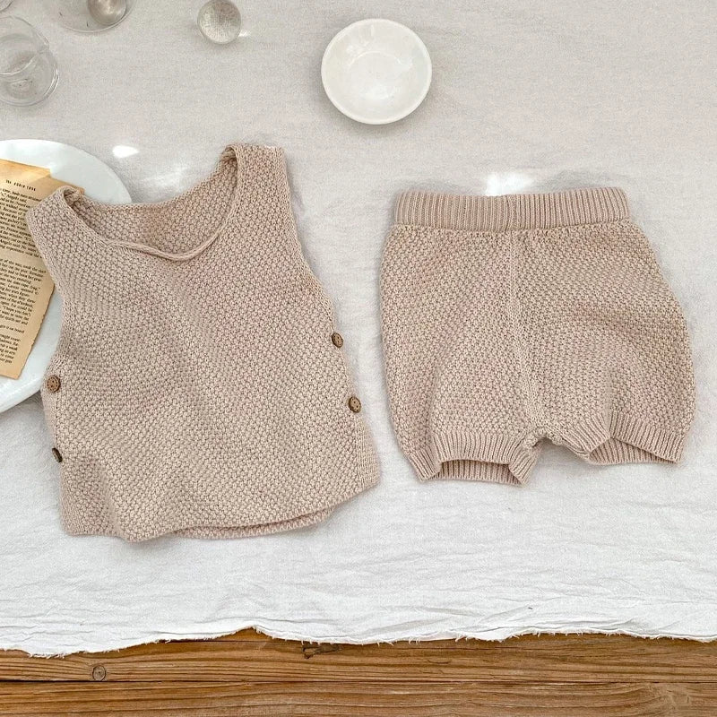 New Baby Clothing Knitted Sweater Thin Tank Top Open Button Top+Shorts 2-piece Set for Boys and Girls