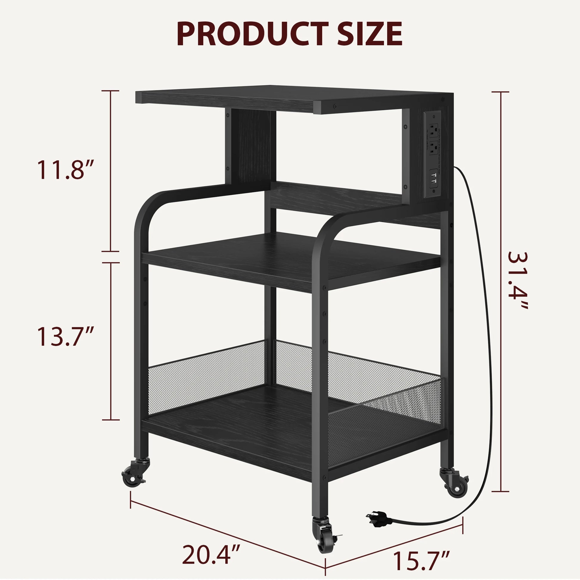 - Adjustable 3-tier storage shelf keeps paper, ink, cables, and accessories organized and within reach, so you can customize spacing for your equipment.
