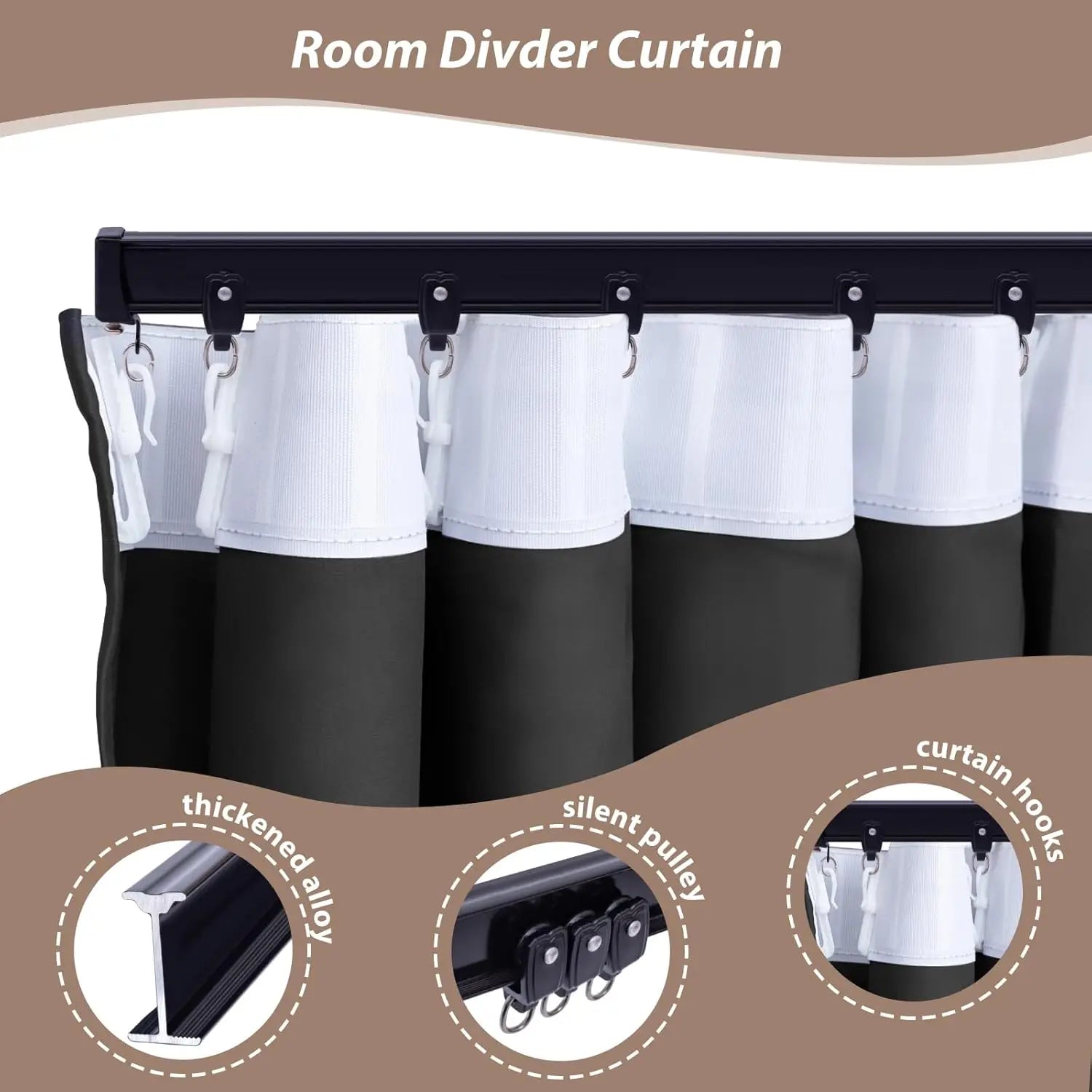 Room Divider Curtains with Ceiling Curtain Track Set Window Curtain for Bedroom,Living Room Total Blackout Thermal Insulated