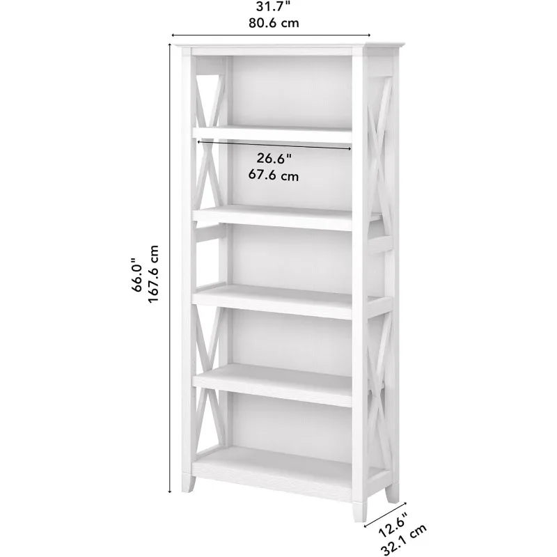 Tall 5 Shelf Bookcase for Living Room or Home Office, Large Bookshelf, Modern Farmhouse Style, Key West Collectio