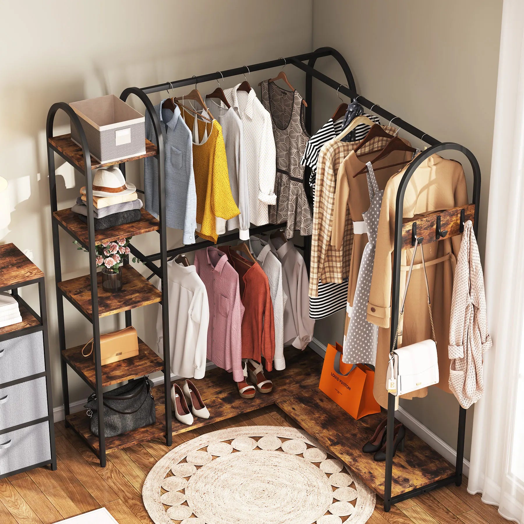 Tribesigns L Shape Corner Clothes Rack With Storage Shelves