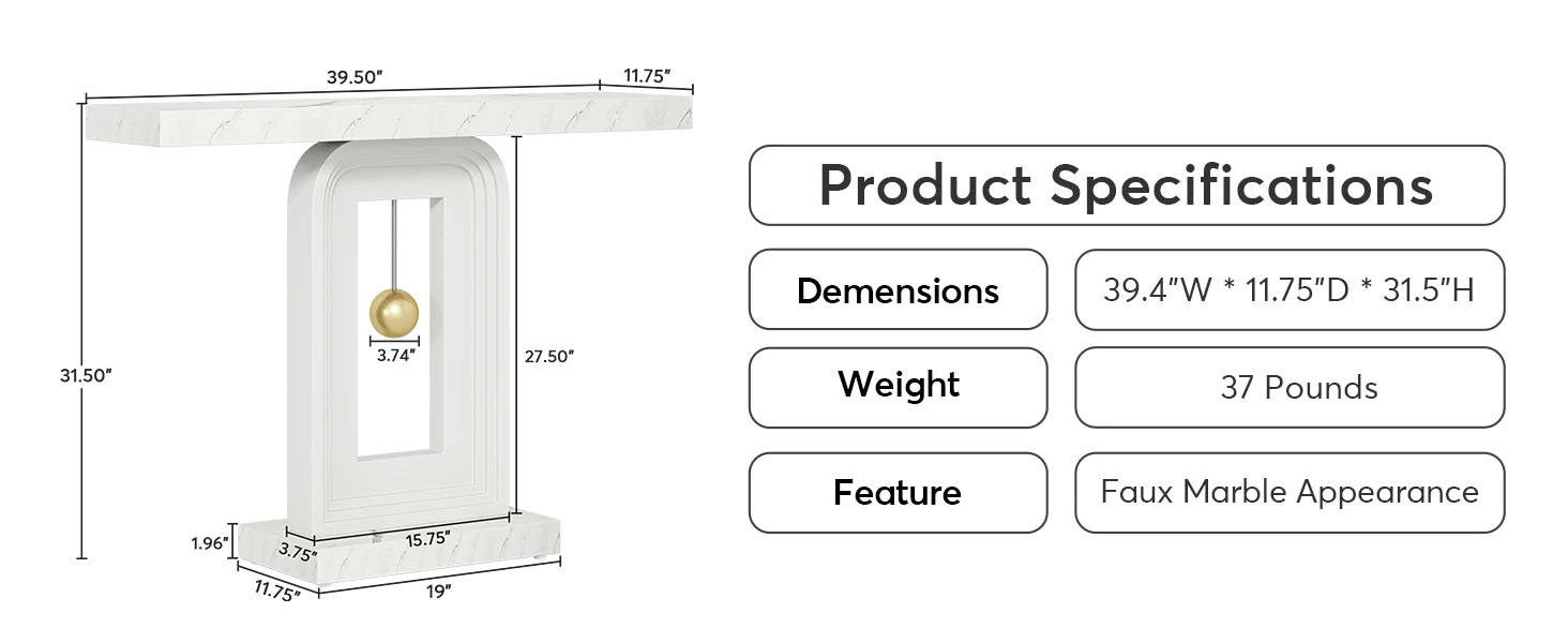 - Compact footprint measures 11.75 in D x 39.4 in W x 32.25 in H, making it ideal for tight foyers, hallways, or behind a sofa while offering a generous surface for essentials.